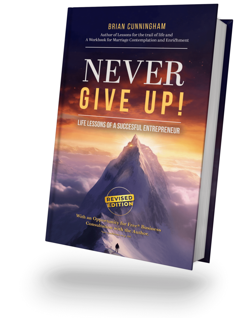 After reading Never Give Up, if you’re interested in a free one-on-one video consultation with Brian Cunningham, including, on a confidential basis, please share your revenue and profit projections for the next year and year 5 within your view of your business journey on the basis that “Happiness for you and me, as your mentor, will only occur when our mutual expectations can be achieved and this can only happen if I have an opportunity to determine if the experiences that I have enjoyed can be transferred to you in a timely manner to meet your mutual expectations.”