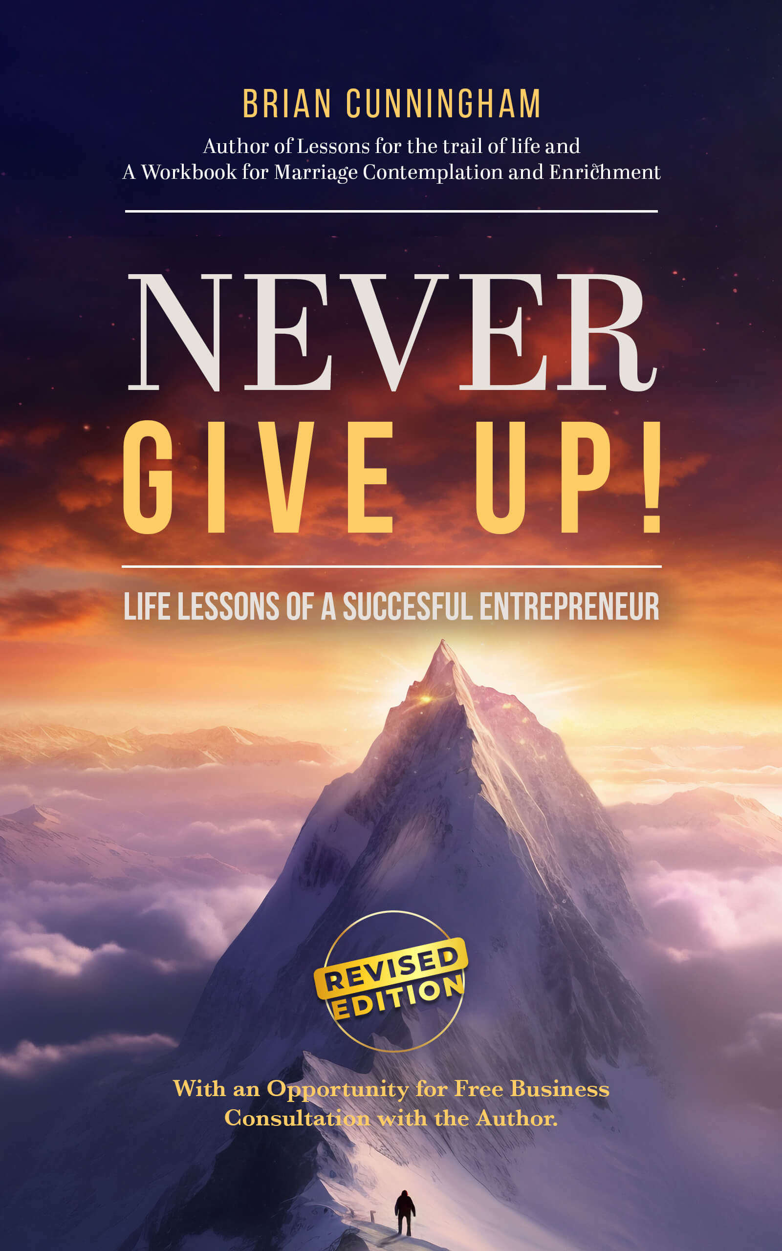 After reading Never Give Up, if you’re interested in a free one-on-one video consultation with Brian Cunningham, including, on a confidential basis, please share your revenue and profit projections for the next year and year 5 within your view of your business journey on the basis that “Happiness for you and me, as your mentor, will only occur when our mutual expectations can be achieved and this can only happen if I have an opportunity to determine if the experiences that I have enjoyed can be transferred to you in a timely manner to meet your mutual expectations.”